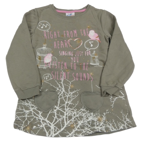 Hnedá tepláková tunika s vtáčky a nápisom Topolino