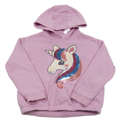 Ružová oversize mikina s jednorožcem z flitrů a kapucňou C&A