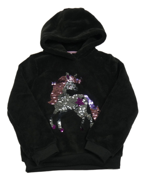 Čierna chlpatá mikina s jednorožcem z překlápěcích flitrů a kapucňou Kiki&Koko