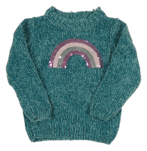 Modrý žinylkový sveter s duhou z flitrů Kiki&Koko