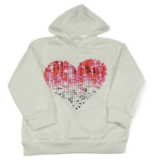 Biela tepláková mikina so srdiečkom a kapucňou