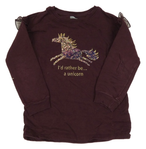 Mahagónovoá mikina s jednorožcem z flitrů a volánikmi Next