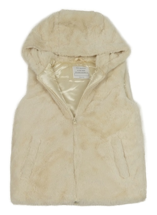 Smotanová kožušinová zateplená vesta s kapucňou Primark