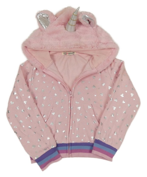 Ružová prepínaci crop mikina so srdiečkami a kapucí - Jednorožec