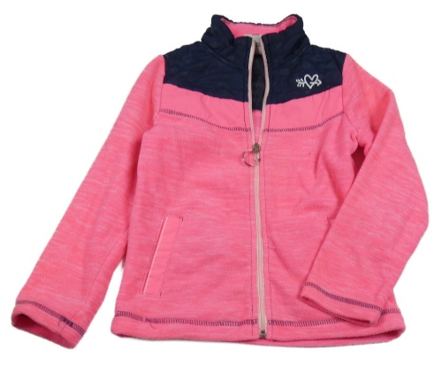 Tmavomodro-neónově ružová šusťákovo/fleecová prepínaci mikina so srdiečkom Topolino