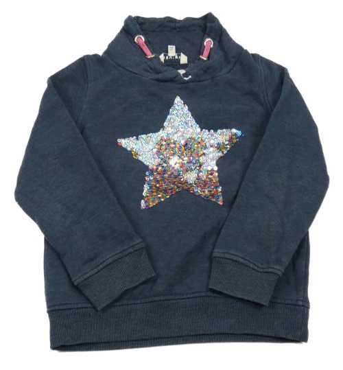 Tmavomodrá mikina s překlápěcími flitre a komínovým golierom Review