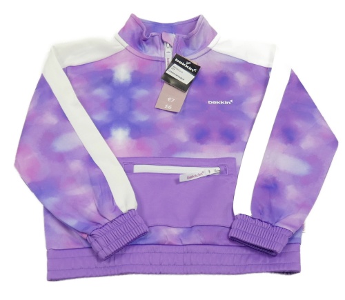 Nové - fialovo-ružovo-bielo-tmavofialová batikovaná športová mikina s vreckom bekkin