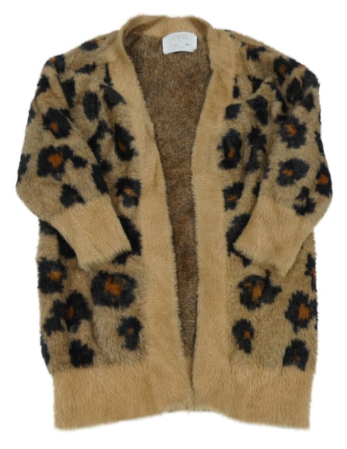 Hnedý chlpatý svetrový cardigan s leopardím vzorom Zara
