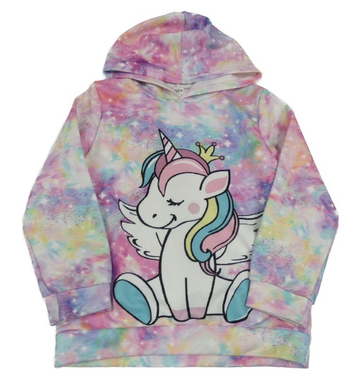 Farebná batikovaná mikina s jednorožcom a kapucňou SHEIN