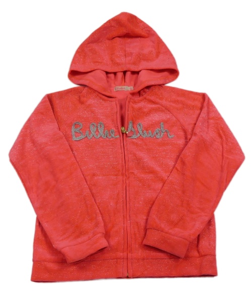 Neónově ružovo-strieborná zamatová prepínaci mikina s nápisom a kapucňou Billieblush