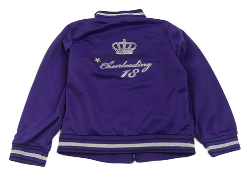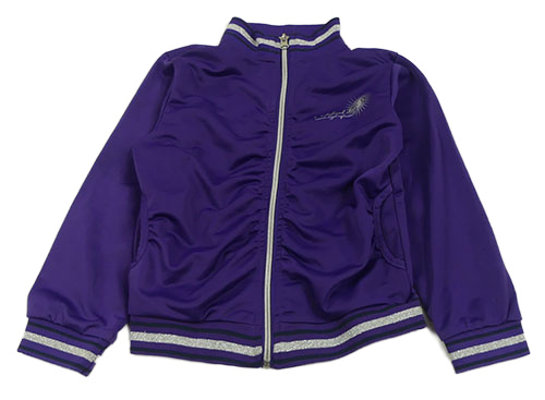 Tmavofialová prepínaci športová mikina s nápismi a pruhmi a korunkou