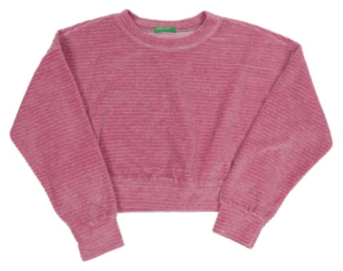 Tmavorůžovo-strieborná pruhovaná zamatová crop mikina Benetton