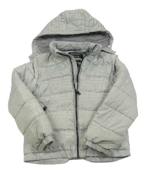 Sivá šušťáková vzorovaná prešívaná zimná bunda s odopínacíá kapucňou Guess