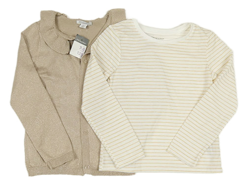 Nový - 2Set - Béžovo/zlatý melírovaný prepínaci sveter s límečkem + bílo/zlaté pruhované tričko PRIMARK