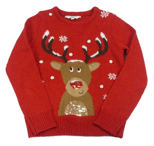 Červený melírovaný sveter so sobom s flitrami a trblietkami Miss E-vie