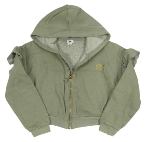 Khaki prepínaci oversize crop mikina s logom a volánikmi a kapucňou RIVER ISLAND
