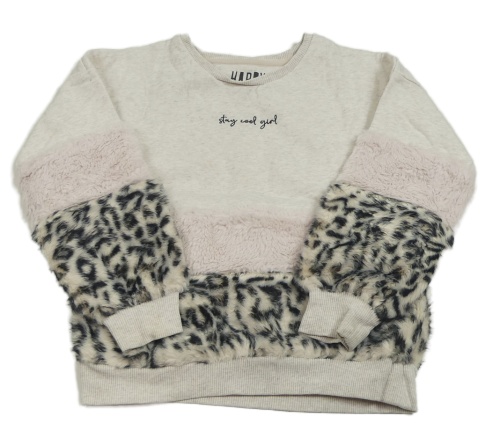 Bielo-béžová melírovaná mikina s kožúškom a nápisom F&F
