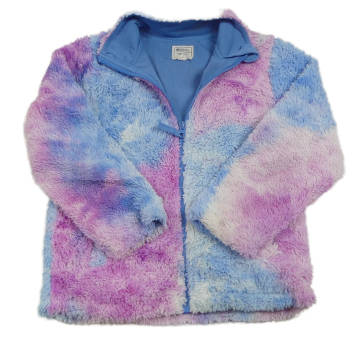 Modro-růžovo-lila batikovaná chlpatá podšitá prepínaci funkčná mikina Mountain Warehouse