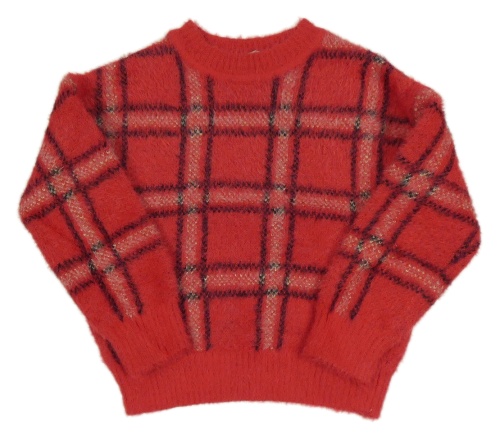 Červeno-čierno-biely kockovaný chlpatý sveter George