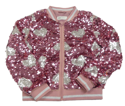 Ružová flitrová podšitá bunda so srdiečkami H&M