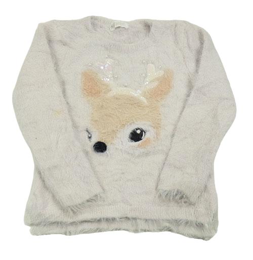 Pudrový chlpatý sveter so srnkou s flitrami a perlami