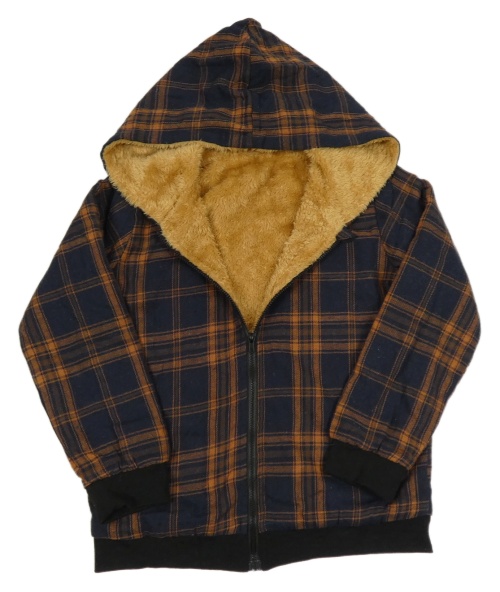 Tmavomodro-hnedá kockovaná zateplená prepínaci mikina s kapucňou