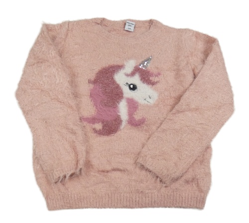 Svetloružový chlpatý sveter s jednorožcom Dopodopo