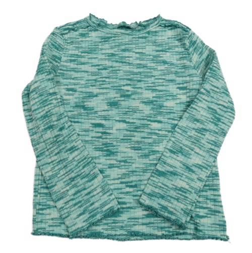 Modrodzeleno-mentolovo-smetanové melírované žebrované úpletové mikinotriko s kanýrky