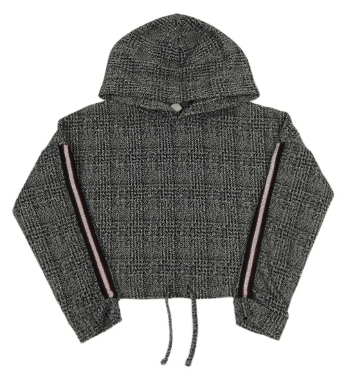 Čierno-bielo-sivá kockovaná crop mikina s pruhmi a kapucňou Matalan