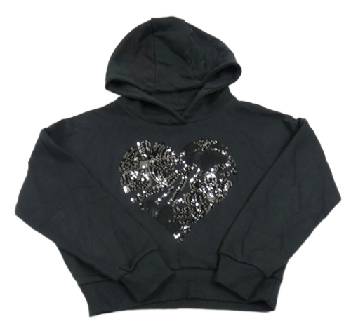 Tmavosivá oversize crop mikina so srdíčkem z flitrů a kapucňou F&F