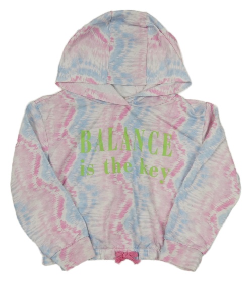 Ružovo-modro-biela batikovaná crop mikina s nápisom a kapucňou LC Waikiki