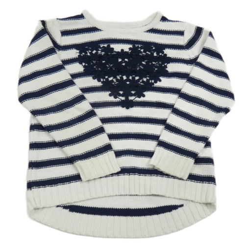 Bielo-tmavomodrý pruhovaný sveter s kvietkami Nutmeg