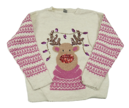 Smetanovo-ružový sveter so sobom a vzorovanymi rukávy Tu