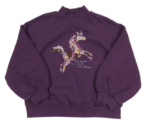 Tmavofialová oversize mikina s jednorožcom s flitrů Next