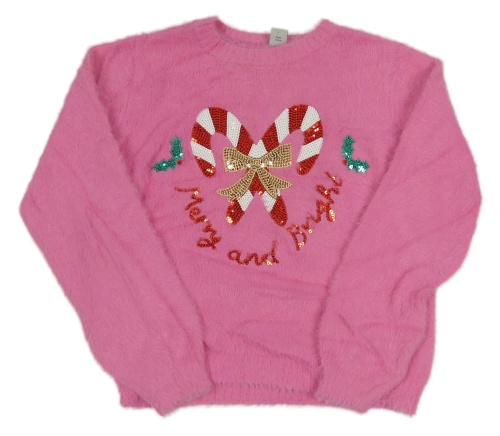 Ružový chlpatý sveter s hůlkami z flitrů Tu