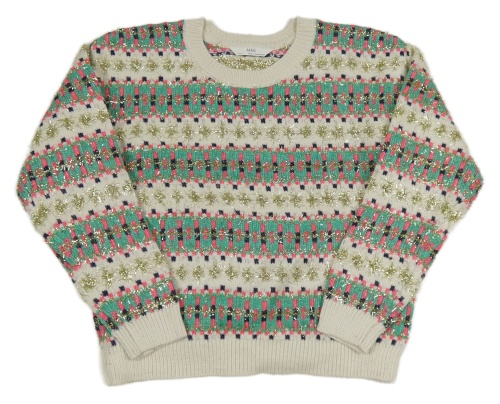 Smetanovo-zeleno-zlatý vzorovaný sveter M&S