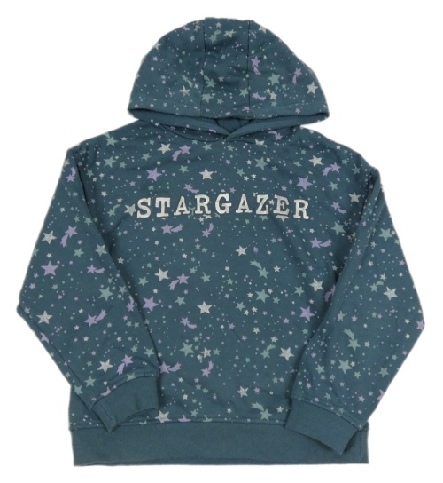 Modrošedá mikina s hvězdami, nápisom a kapucňou Principles