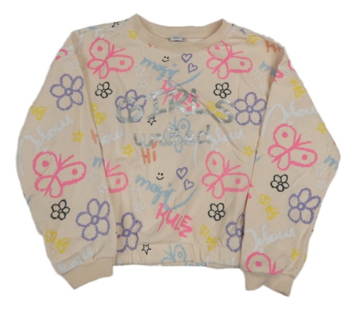 Pudrová crop mikina s motýly a nápismi Dopodopo