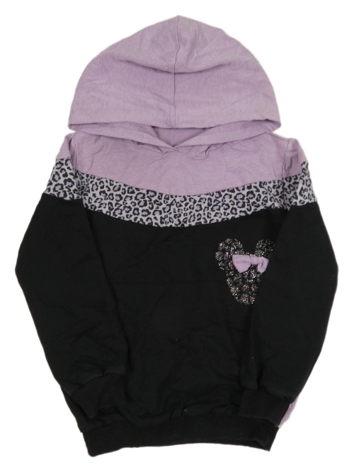 Čierno-fialová melírovaná mikina s Minnie z kamínků a vzorom a kapucňou