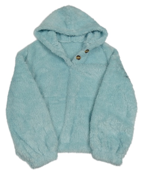 Svetlomodrá chlpatá crop mikina s kapucňou