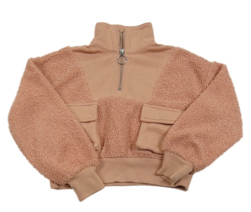 Svetloružová huňatá crop mikina so stojačikom River Island