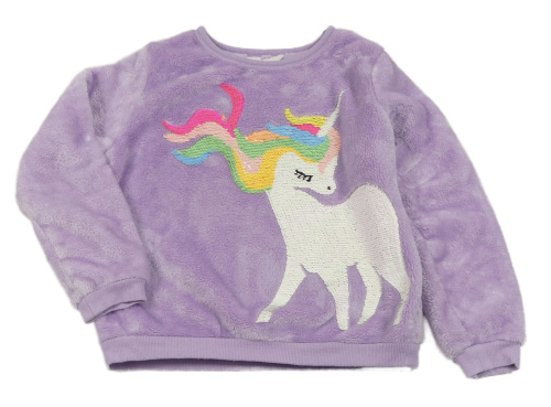 Lila chlpatá mikina s jednorožcem z flitrů H&M