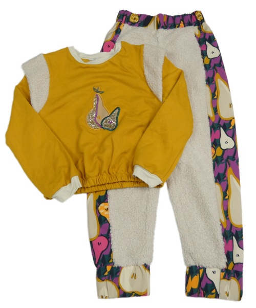2set - Hořčicovo-béžovo-huňatá mikina s hruškou + huňaté tepláky