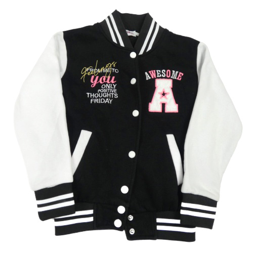 Čierno-biela baseballová mikina s písmenem a nápisom