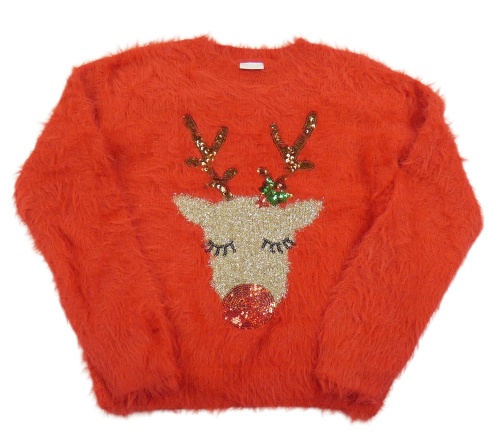 Červený chlpatý sveter so sobom F&F