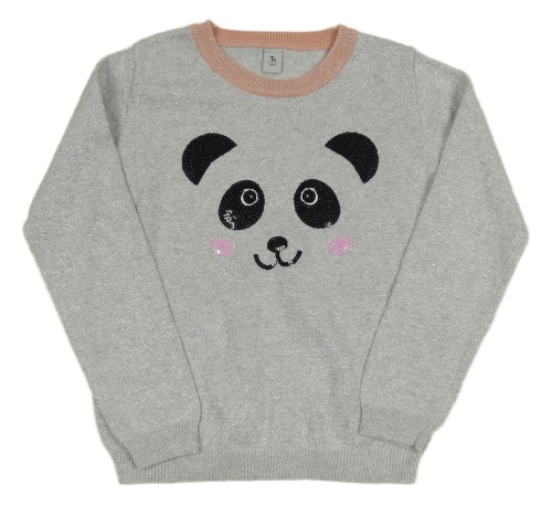 Stříbrno-ružový sveter s pandou Tu
