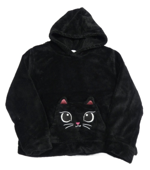 Čierna chlpatá mikina s mačkou a kapucňou H&M