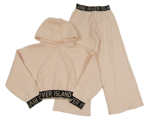 2Set - Světlebroskvovo-čierna oversize crop mikina s logy a vreckom a kapucí + široké tepláky RIVER ISLAND