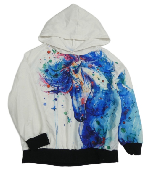 Bielo-modrá ľahká mikina s koněm a kapucňou