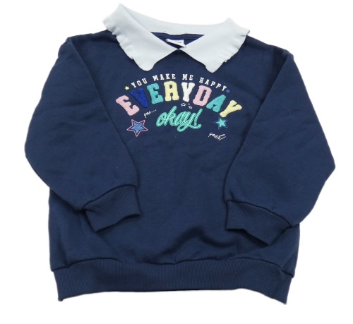 Tmavomodrá mikina s nápismi a bielým golierikom Y.F.K.